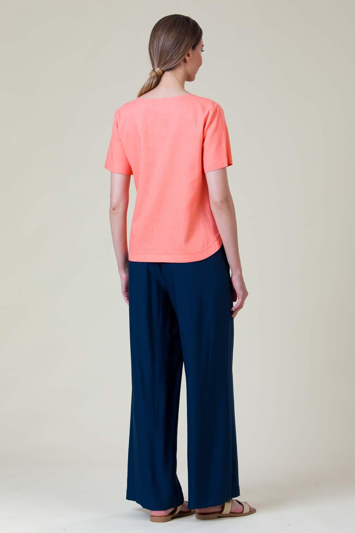 Bluza Anka din in cu viscoza, croi lejer, accesorizata cu nasturi din cocos.