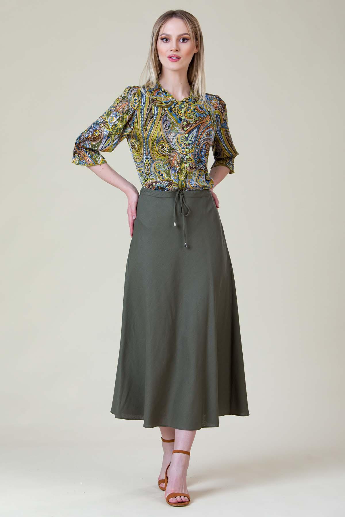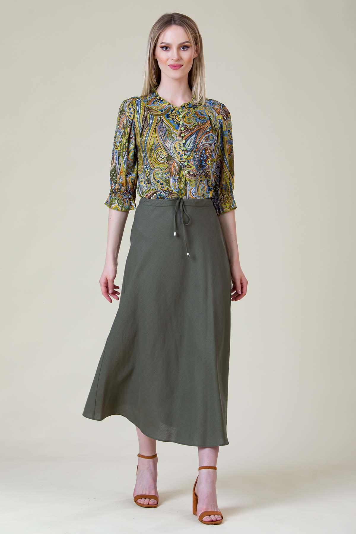 Fusta Edith din in, croiala pe bias cu snur in talie cu opritori metalici.