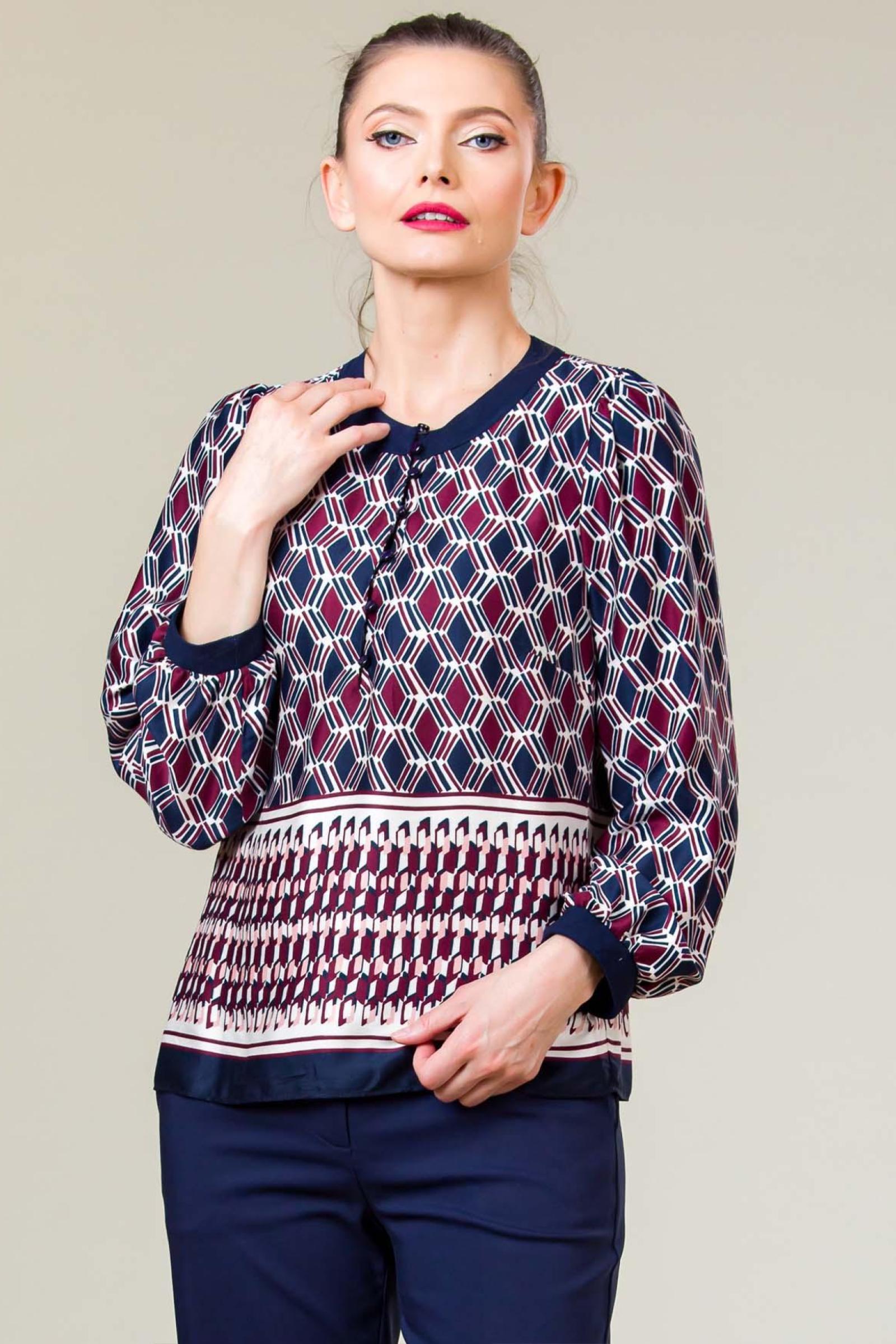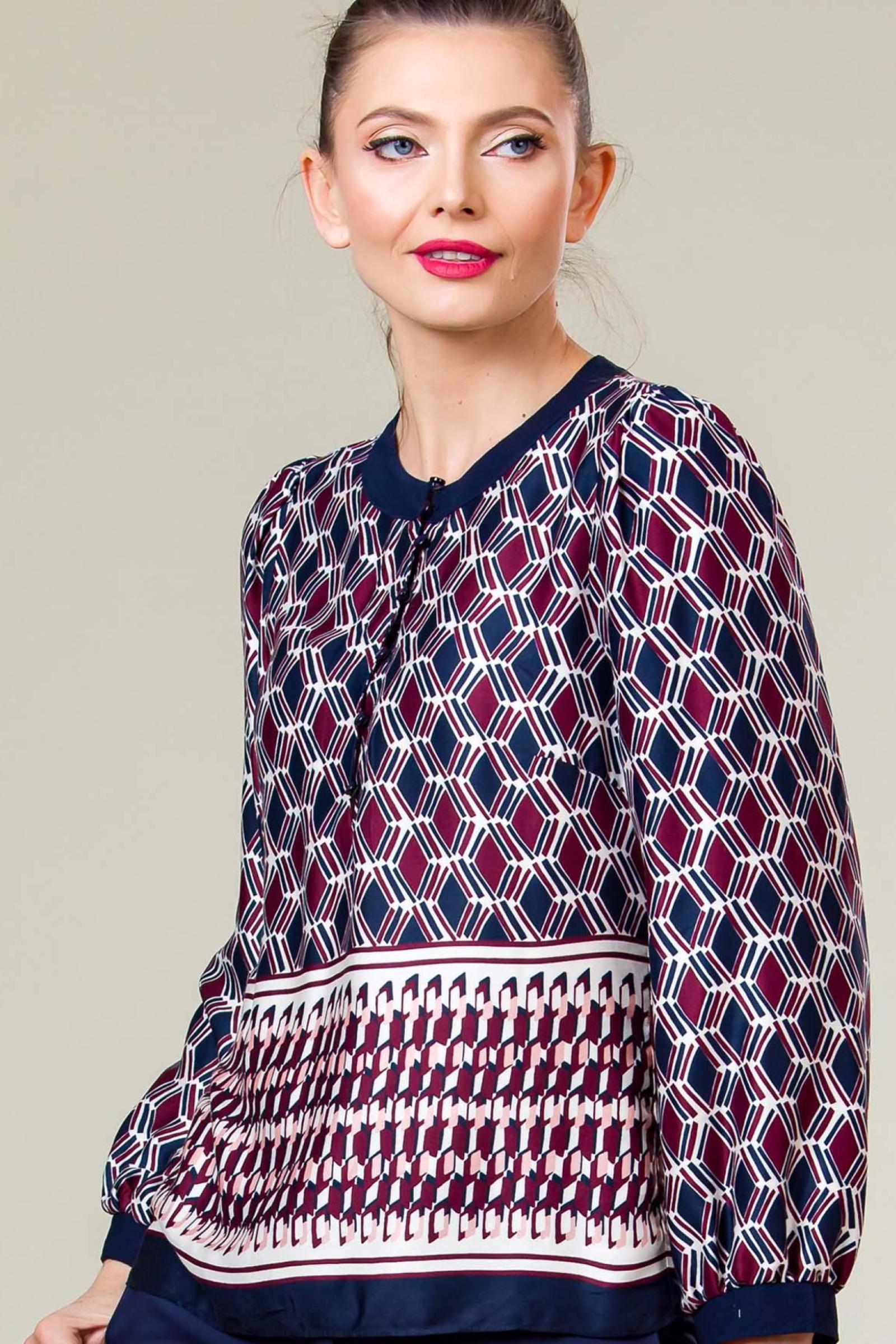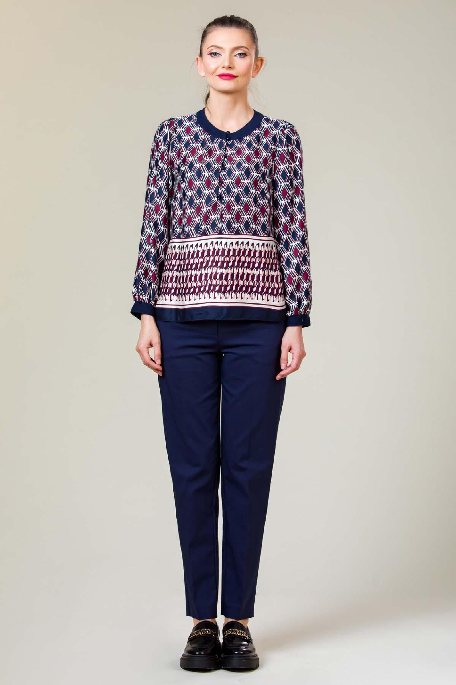 Bluza Simona din viscoza premium cu bordura, guler si mansete contrast.