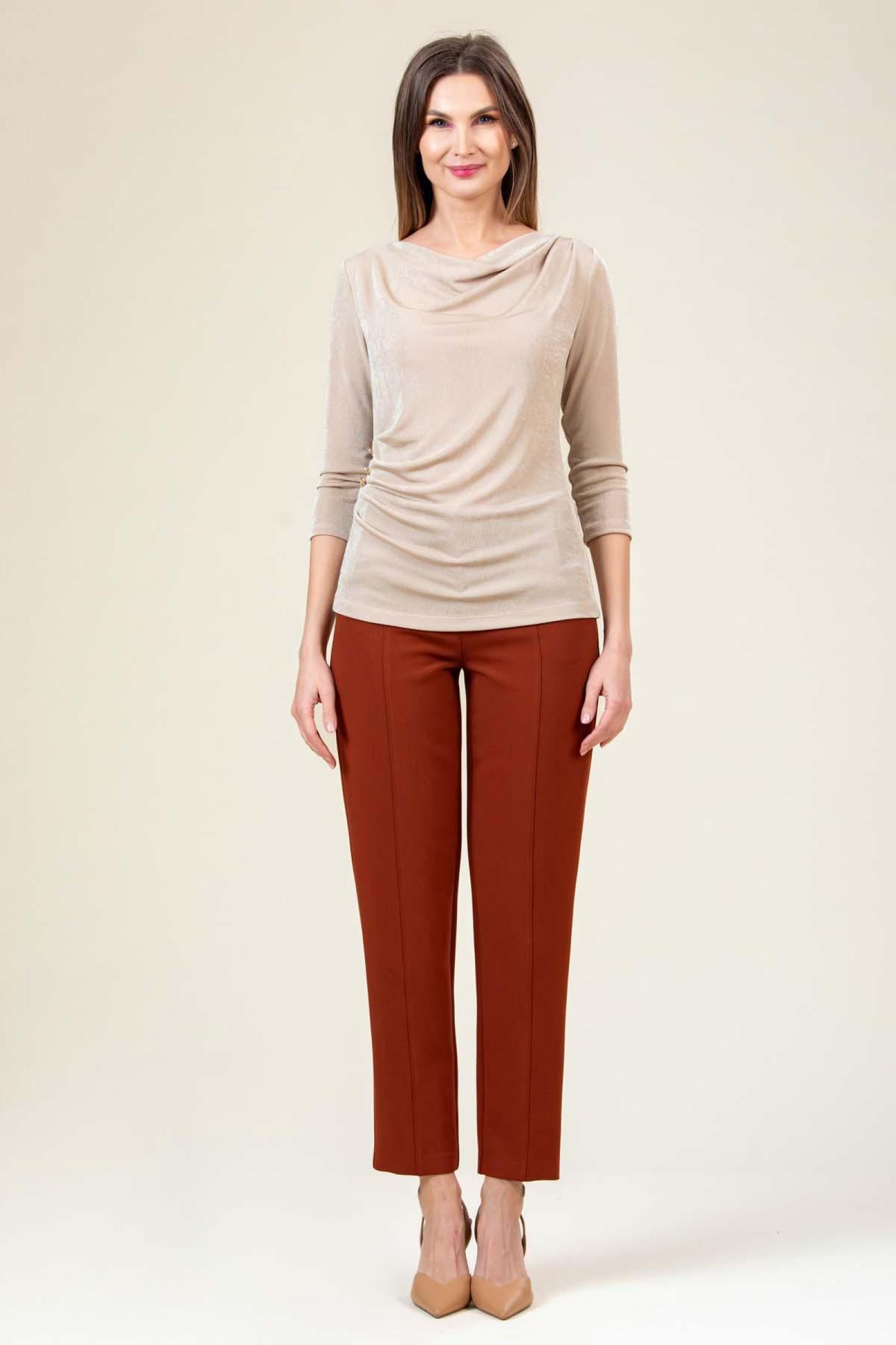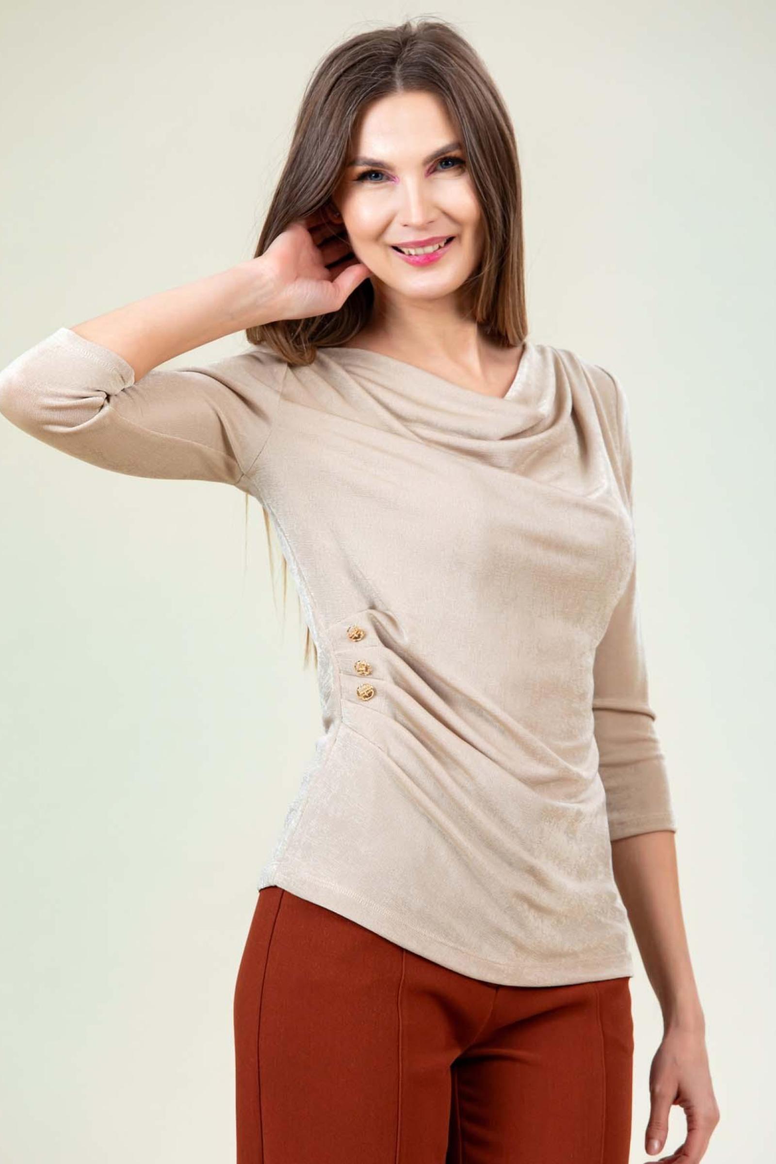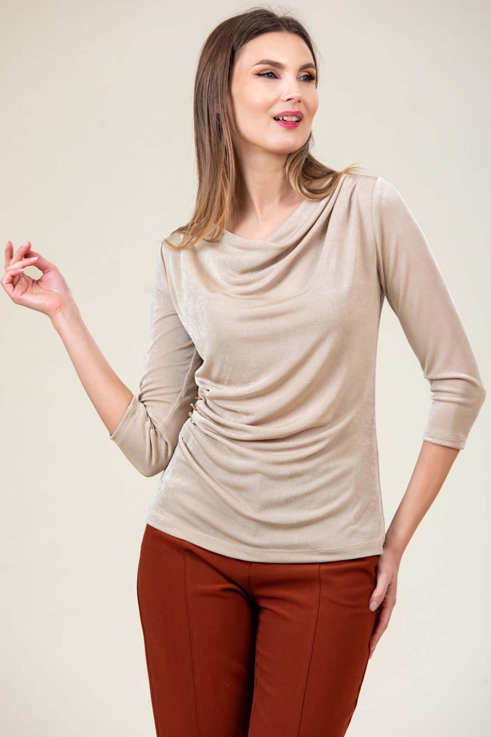 Bluza jersey Ruby cu decolteu cazut si plii cu nasturi metalici decorativi pe o parte.