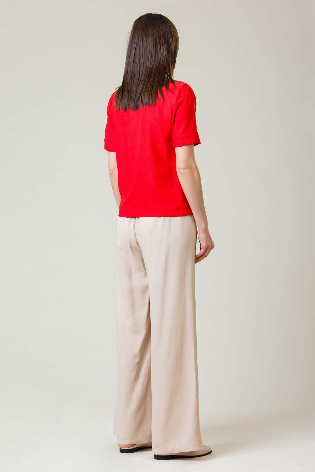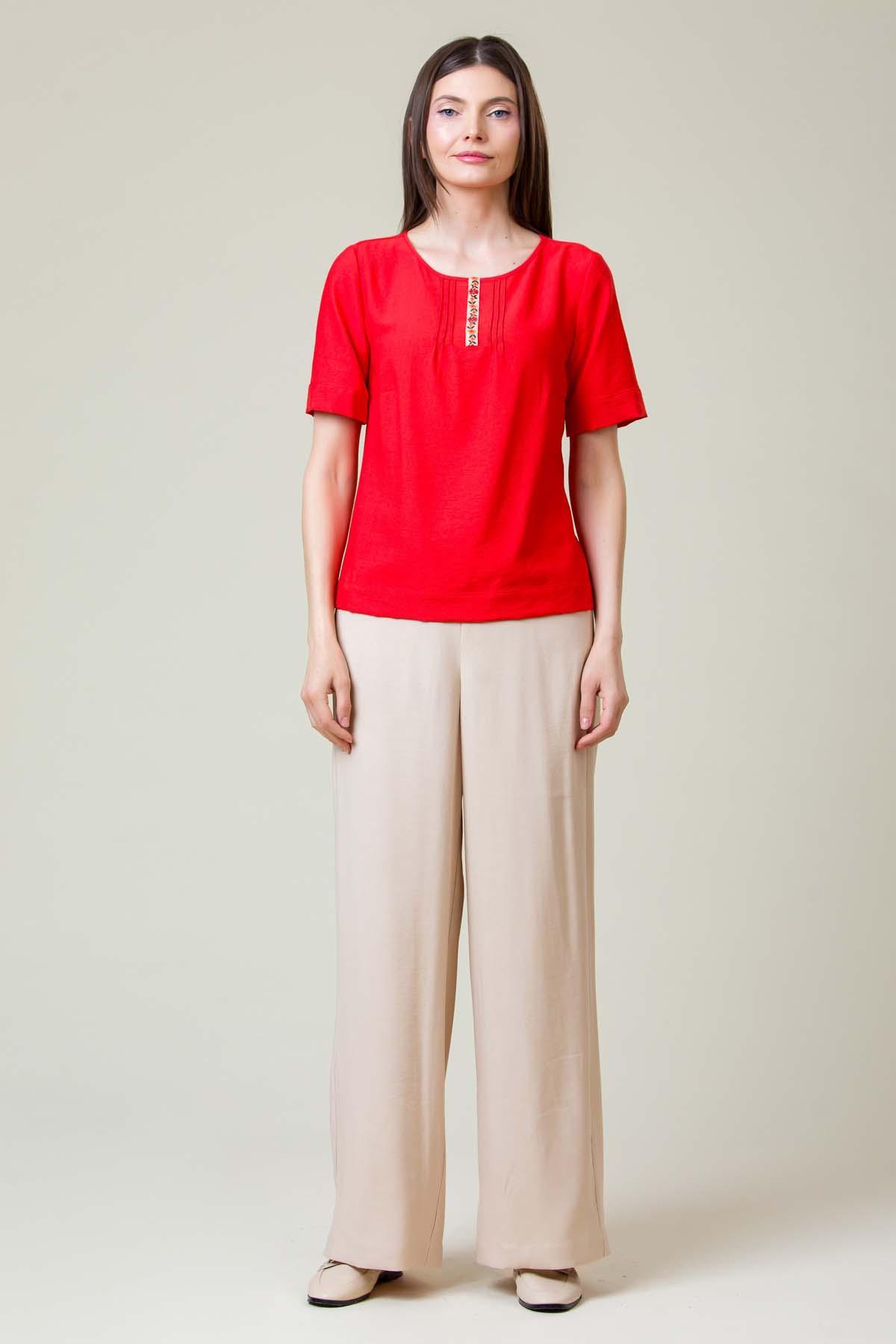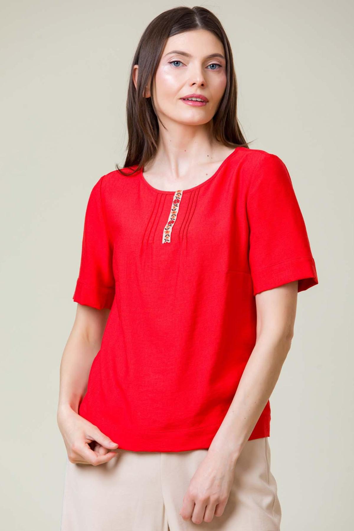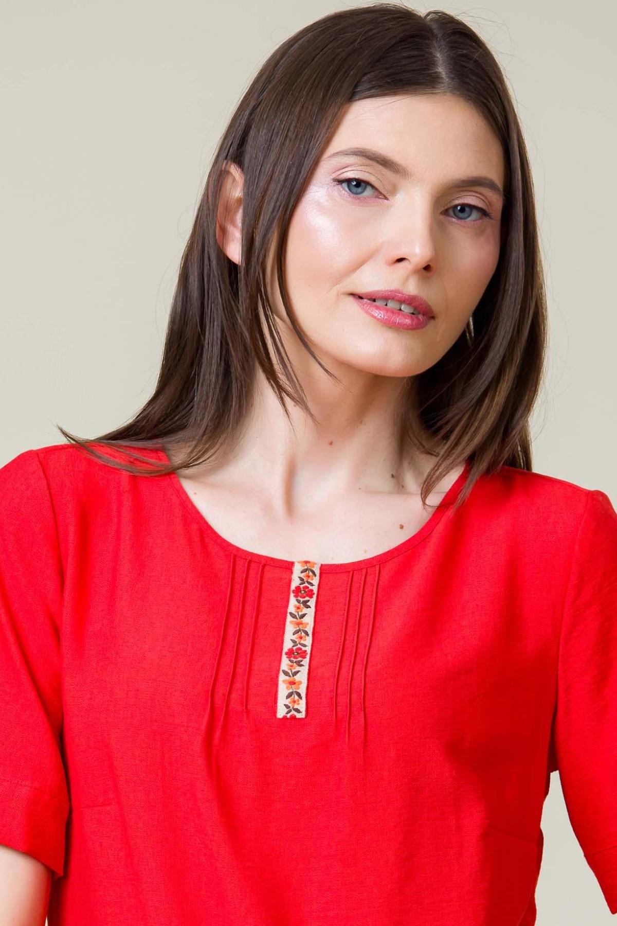Bluza Esther din viscoza creponata, croi lejer cu nervuri la fata si banda brodata decorativa.