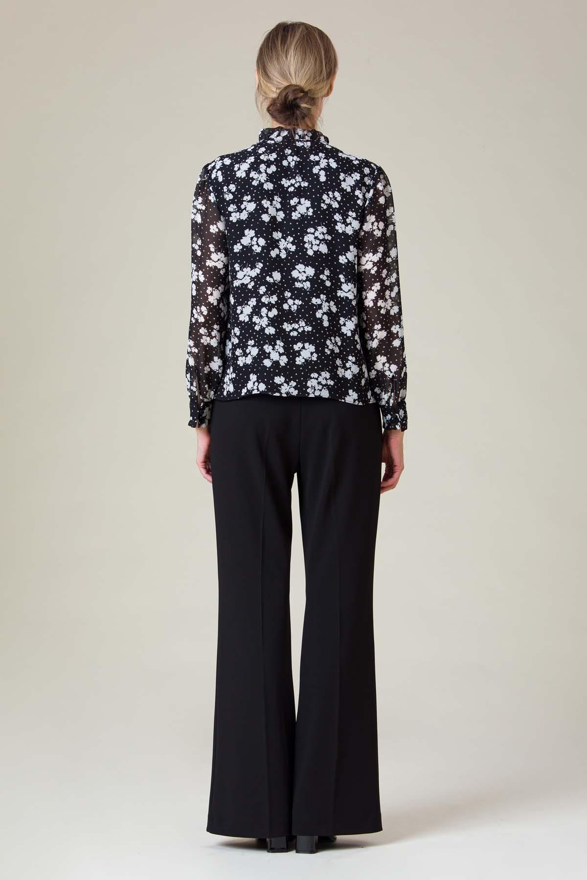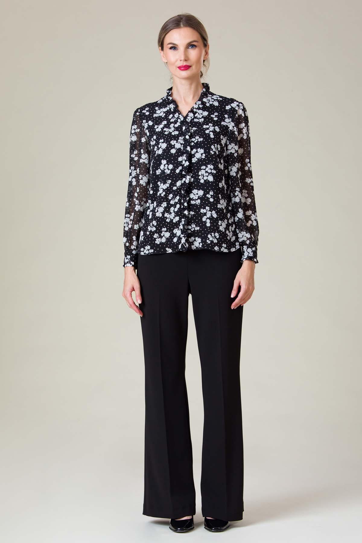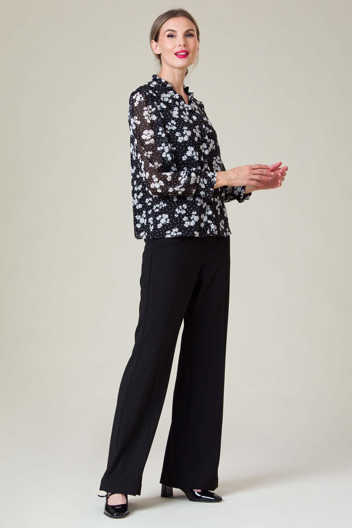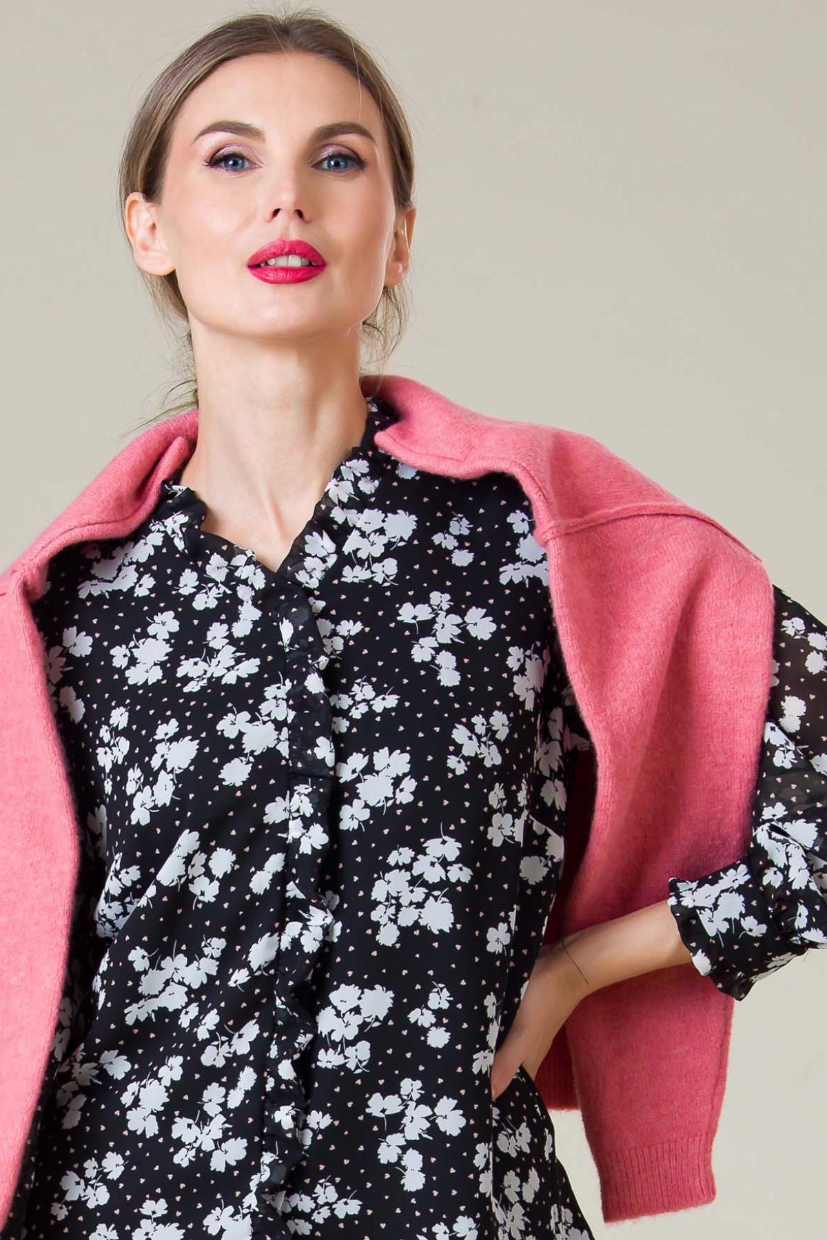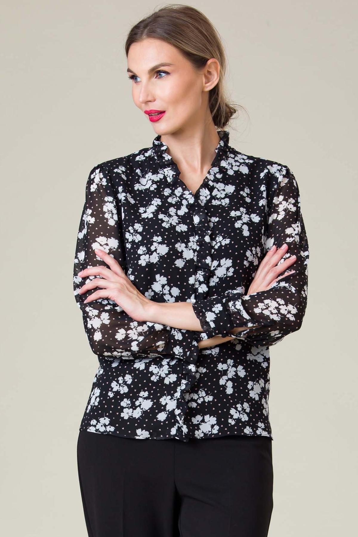 Bluza Carol din voal imprimat, volane decorative usor incretite, confortabila datorita croielii cu maneca raglan si captuselii din viscoza.