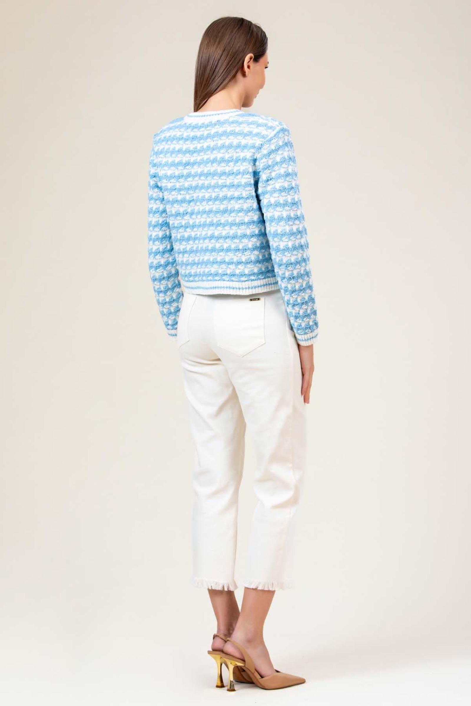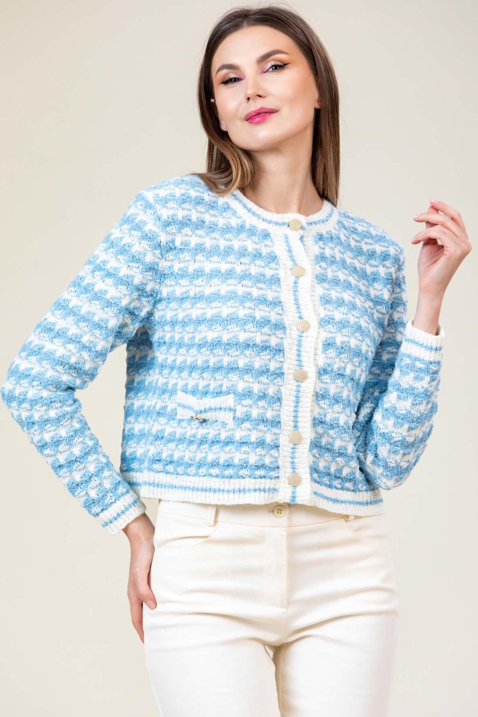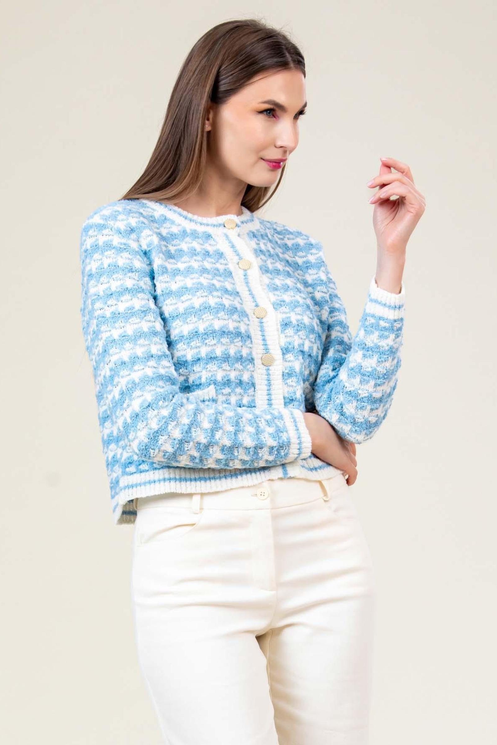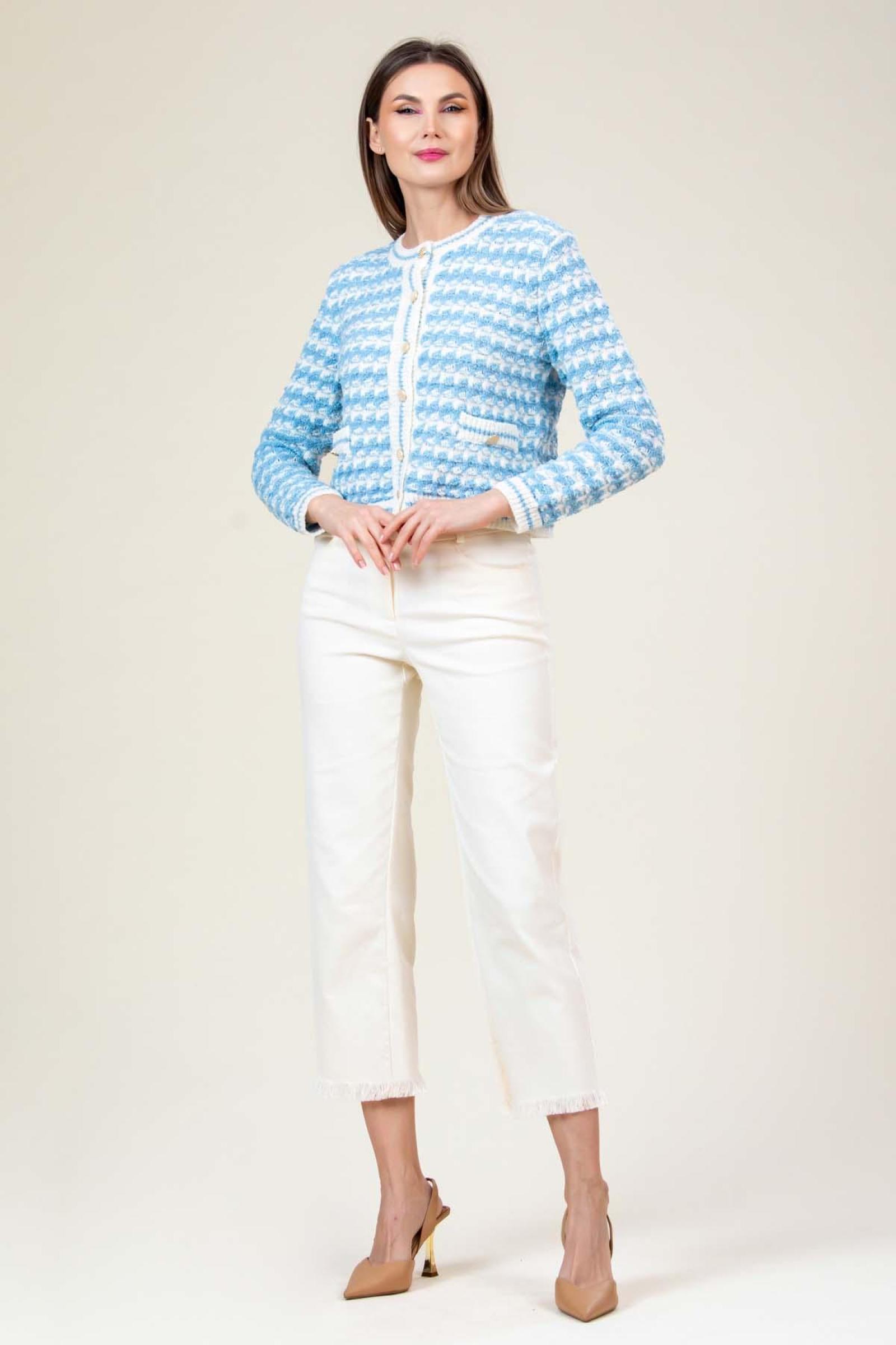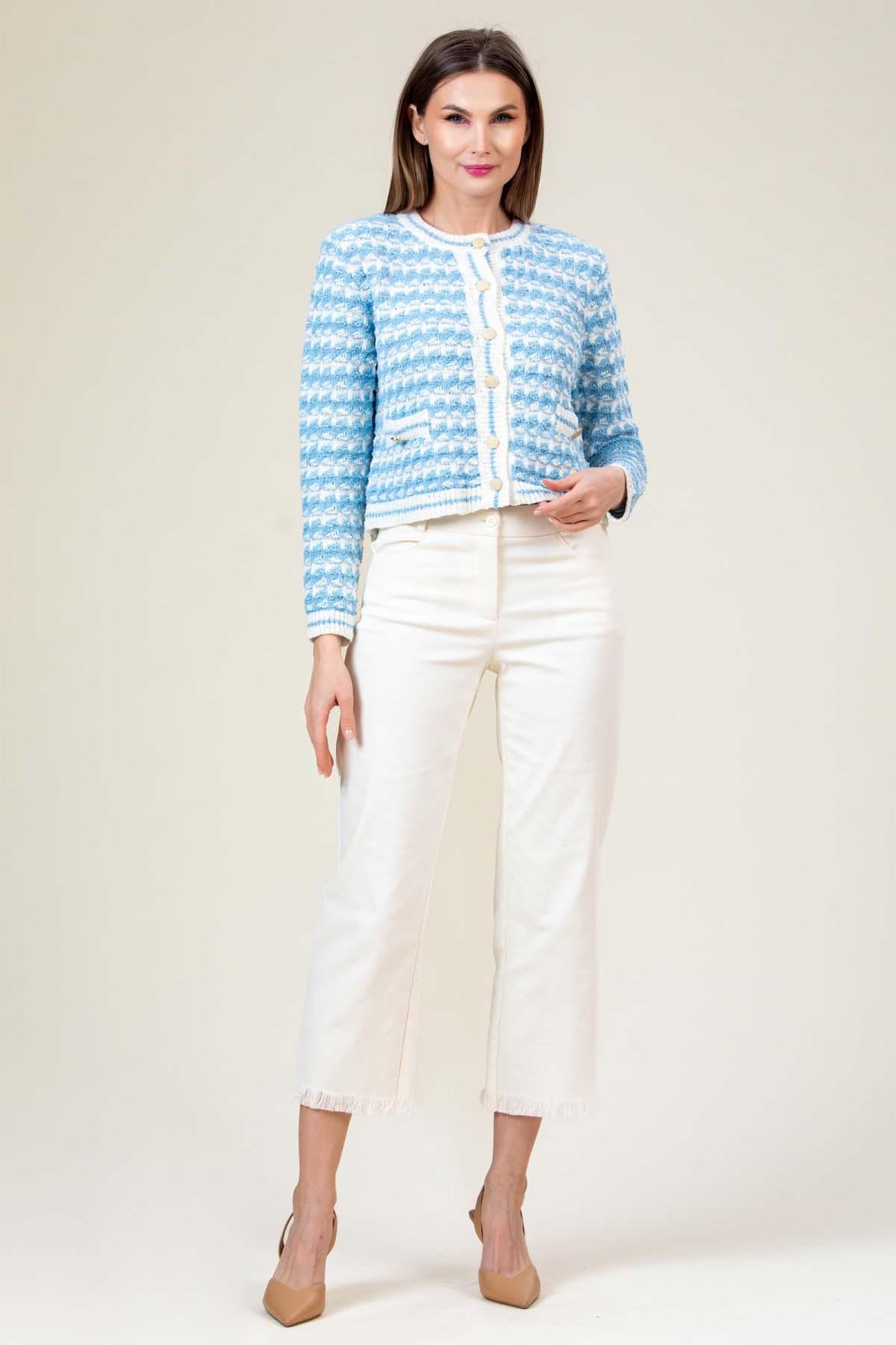 Jacheta tricotata Myra, croi tip chanel cu structura jacard si nasturi aurii.