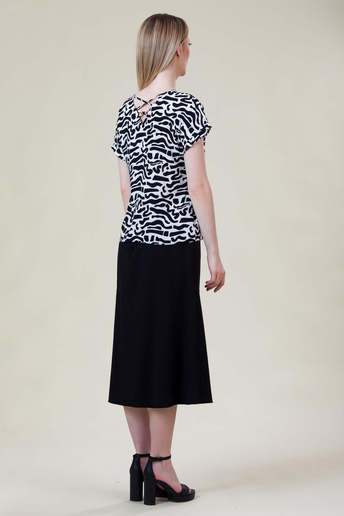 Bluza Patricia din viscoza imprimata cu pliseuri la terminatie maneci si snur la spate. Croiala cu anchior la spate si snur da o nota chic pe care o vei adora.