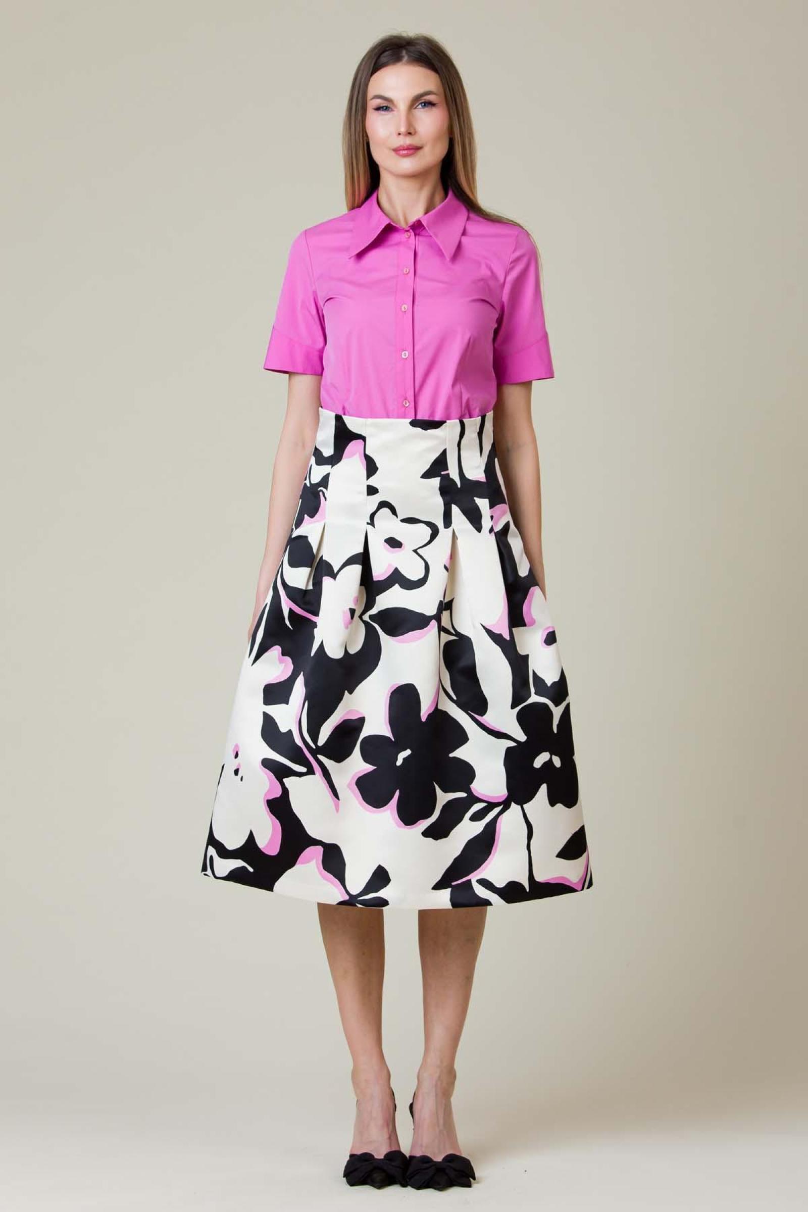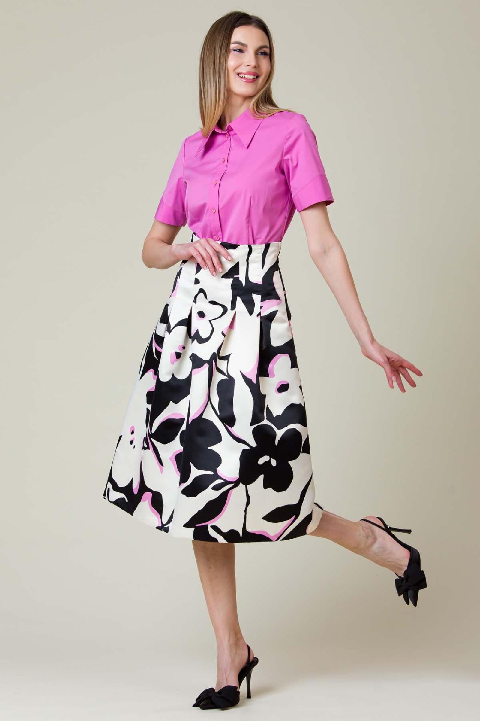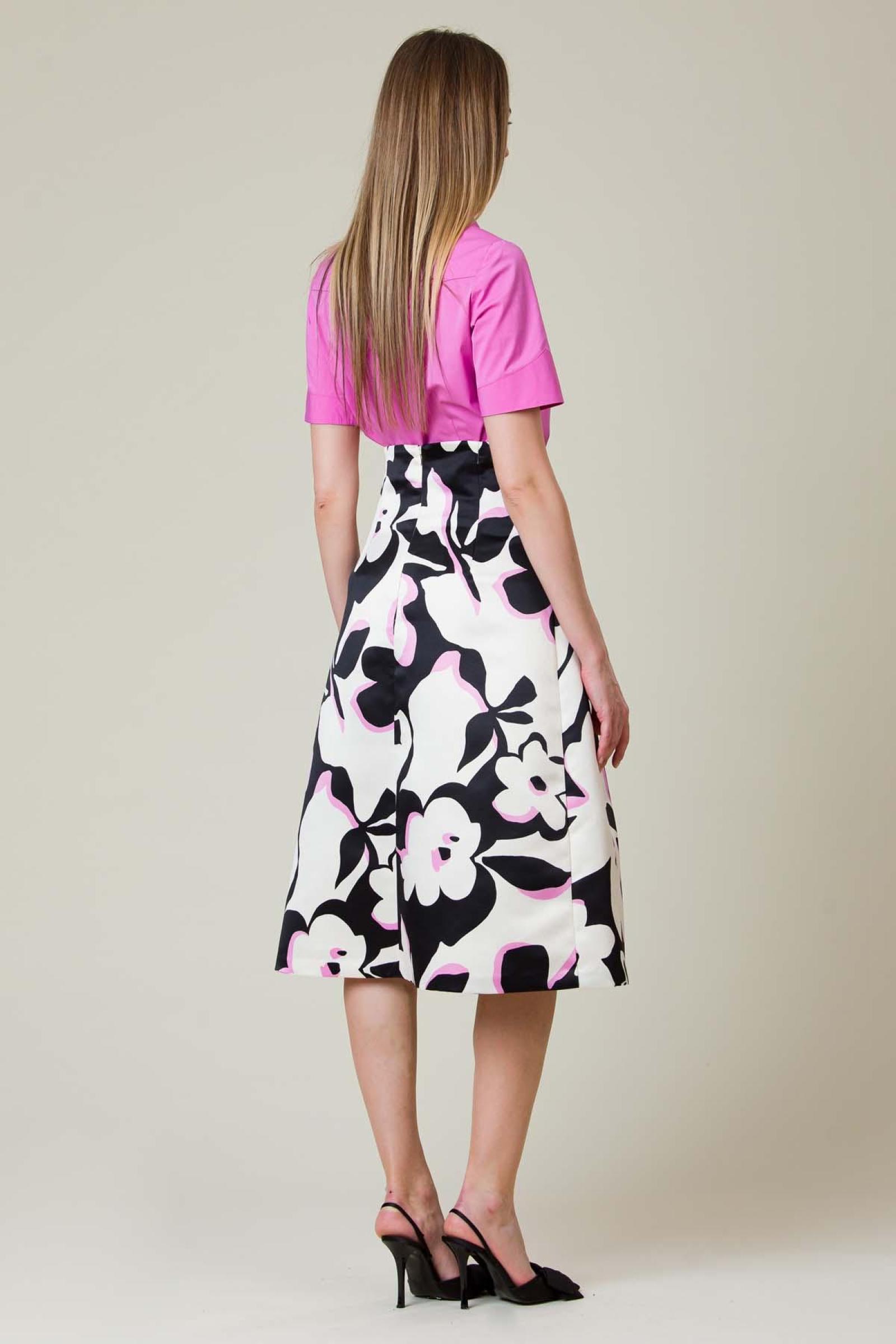 Fusta Mady din tafta imprimata, croiala clos cu talia marcata.