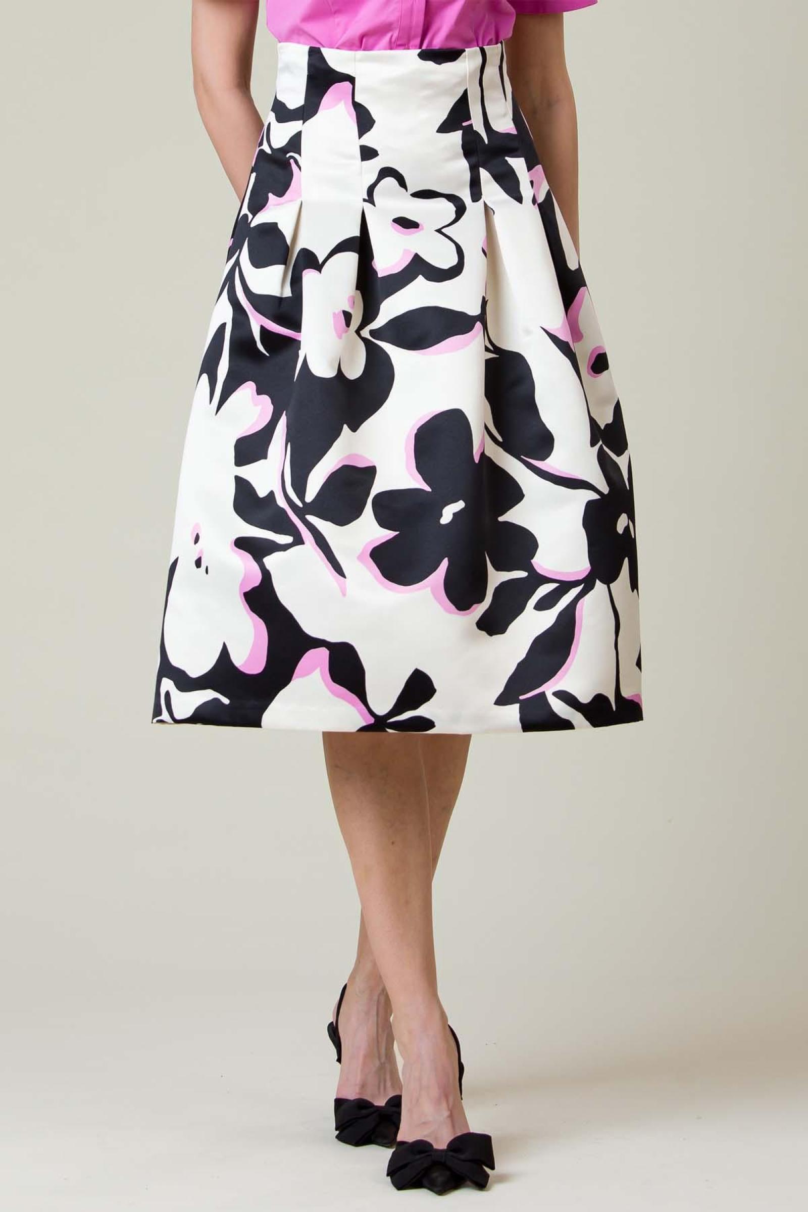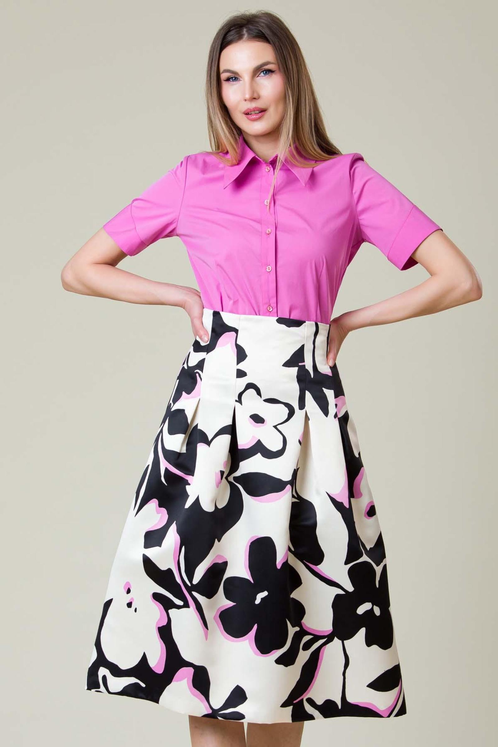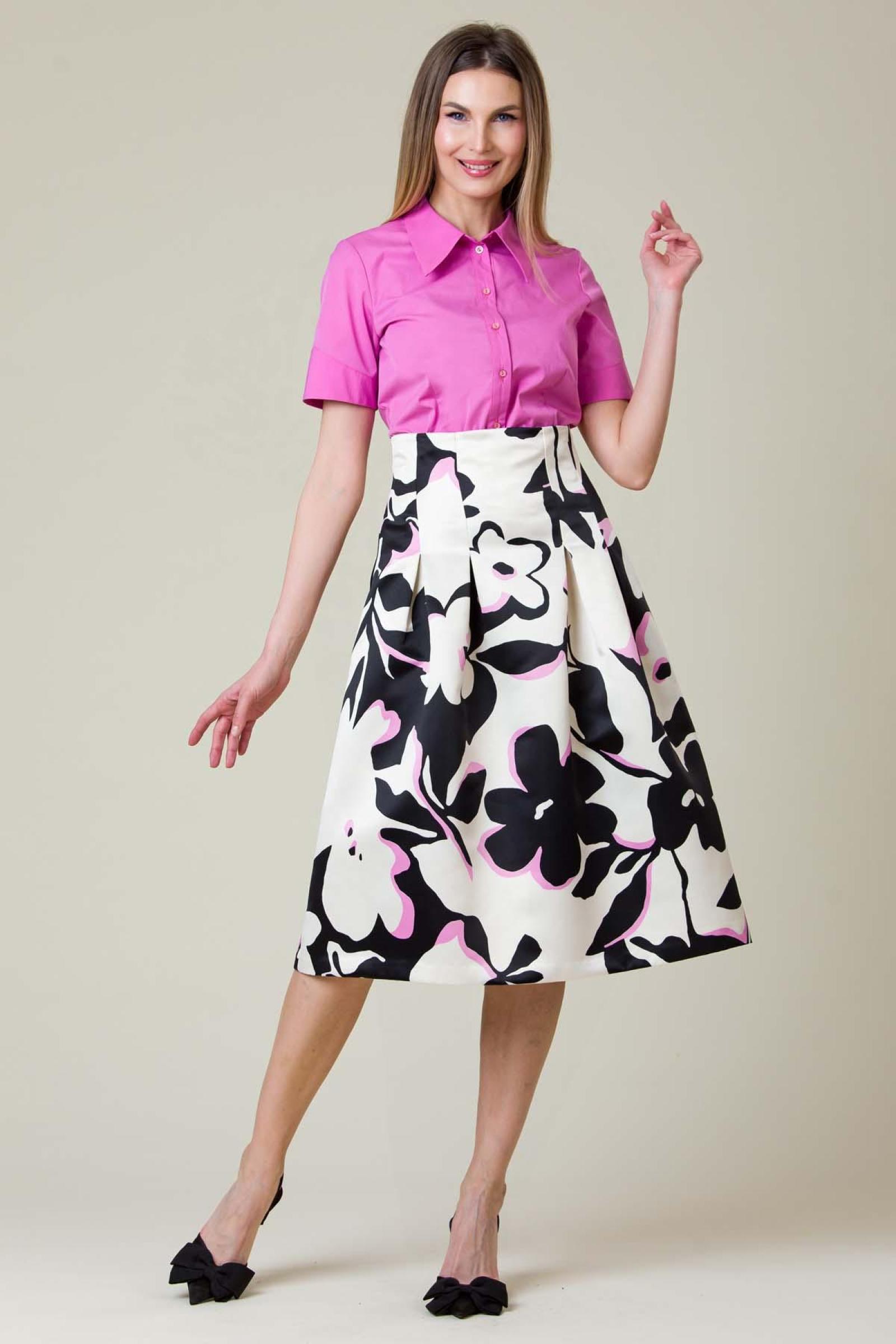 Fusta Mady din tafta imprimata, croiala clos cu talia marcata.